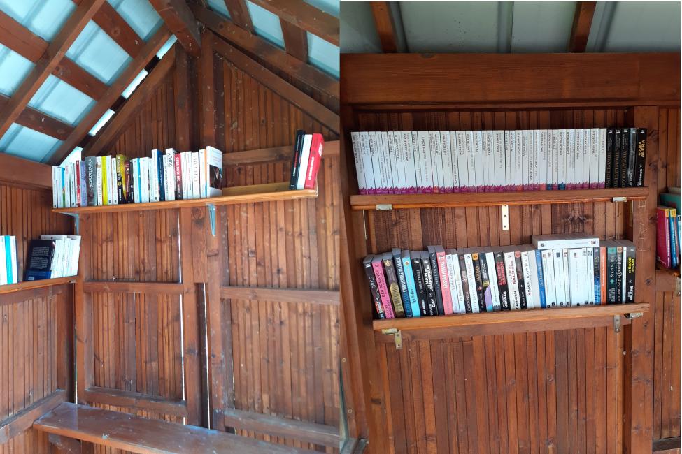 Une très belle initiative de Christine et Didier Brulport qui ont aménagé, avec l'accord de la mairie, l'abri bus du Nouveau Village en bibliothèque "Libre Service"