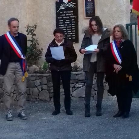 La lecture des messages par Tifany GANDELLI (élève de terminale au lycée d’Embrun) et Monique GELLENS a été suivi par le rappel des noms des soldats « morts pour la France » puis la Marseillaise à clôturé ce moment de recueillement