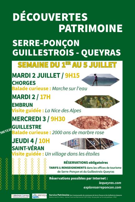 Réservation obligatoire auprès de l'un des offices de tourisme de Serre-Ponçon ou par internet www.exploreserreponcon.com