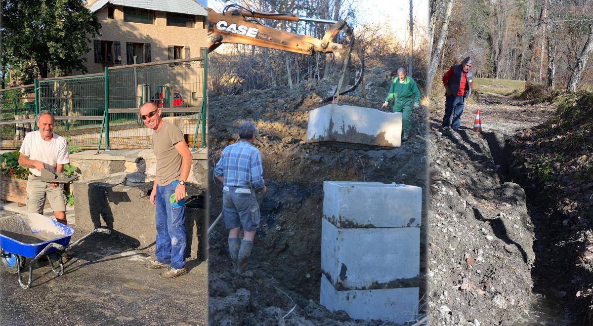 Tous ces travaux ont été réalisés par Monsieur le Maire, l'Adjoint Technique et l’aide précieuse d’habitants de la commune. Hormis la location du tractopelle il n’y a pas eu d'intervention d'entreprises extérieures. La commune a ainsi réalisé une économie substantielle.